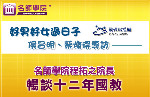 飛碟聯播網-好男好女過日子,侯昌明、蔡燦得專訪名師學院程拓之院長暢談十二年國教。