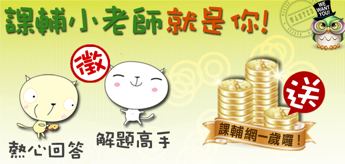 寰宇名師繼續為大家服務的同時,強力徵求課輔小老師,解題賺現金喔!