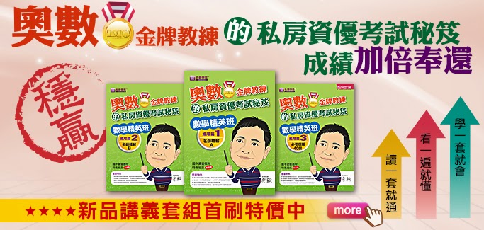 「數學精英班進階篇」新品首刷套書全面優惠中,現買現省,還有精美好禮等你來拿。奧數金牌教練掛保證,絕對讓你逆轉勝!