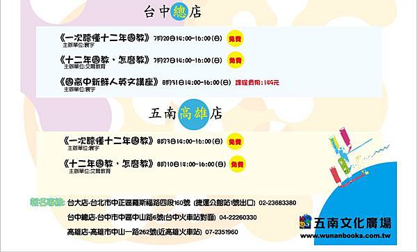 高雄場:8/3 地點:五南書局高雄店(高雄市中山一路262號)