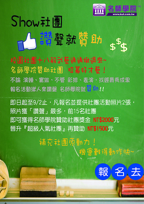 名師學院「Show社團讚聲就贊助」活動開始報名囉!