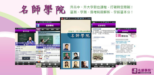 1.現在您可以在 Android 上一窺名師學院精彩課程,打破以往在家學習限制,現在只要利用手機即可搶先取得專業名師解析學測及指考準備方向,超前學習,節省讀書時間,享有最佳教育資源。