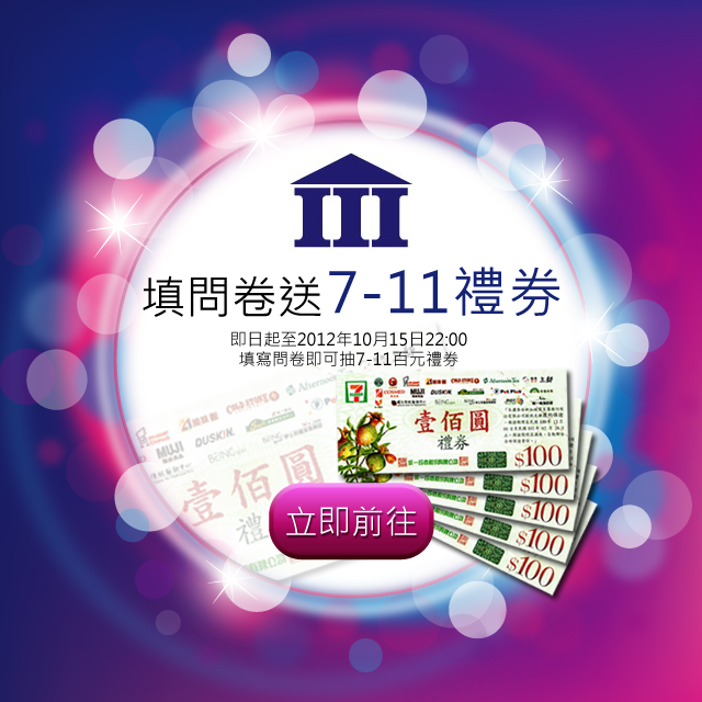 財團法人資訊工業策進會數位教育研究所,為瞭解高中、大學生在課外技藝所需之相關課程能力,請各位同學協助填寫此問卷,並提供7-11便利商店之100元禮卷,給參與填卷之同學參加抽獎。抽獎結果將公佈於資策會網頁 http://www.ifc.org.tw/creative/student/ 中。